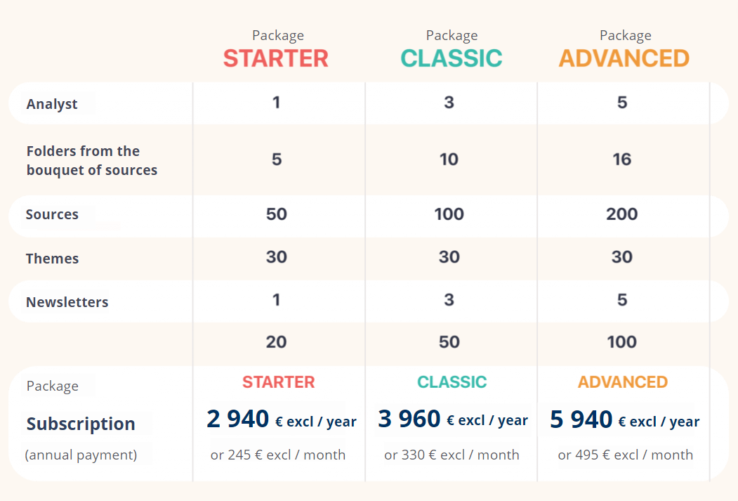 A set of sources allows you to start your monitoring immediately. Then, you enrich your database by easily setting up the sites you want to monitor. You target precisely and filter the important information with your alert triggers.